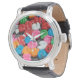 chicle de burbuja brillante aplastado en la carretera luego de un reloj de pulsera de baloncesto