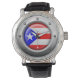 Reloj De Pulsera Gráfico industrial de acero de bandera puertorriqu