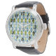Este reloj masculino tiene un diseño moderno de triángulos de mediados de siglo cuyos fondos han sido curvados, puestos en pares con un óvalo entre ellos. Si te gusta el diseño pero prefieres colores diferentes, envíame un mensaje.