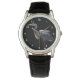 Este reloj muestra la Gran Perón Azul, un gran ave que camina en la familia de garza Ardeidae, común cerca de las costas de agua abierta y en los humedales. Él es la garza más grande de América del Norte. Entre las características destacables se incluyen plumas de vuelo latas, muslos de color rojo-marrón y una franja de paro rojo-marrón y negro por encima de los costados; el cuello es gris oxidado, con blanco y negro por la parte delantera; la cabeza es más pálida, con una cara casi blanca, y un par de columnas negras que van desde justo encima del ojo hasta la parte posterior de la cabeza. Las plumas en el cuello inferior son largas y de tipo plume. Debido a que esta es la temporada de reproducción, también tiene penachos en la parte inferior y una cuenta de naranjas. Sus plumas están iluminadas por la luz luminosa del sol.