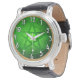 Este reloj presenta el pentáculo verde del norte, que representa el elemento de la tierra, sobre un fondo de piedra texturizada. Los números son grandes y blancos para una visualización fácil.