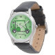 La muñeca observa el diseño de un carrito de golf verde. Puede personalizar este reloj con cualquier texto que elija. Si necesita ayuda para personalizar, póngase en contacto con nosotros a través del enlace de mensajes de esta página. Coche verde de golf personalizado para reloj de pulsera.