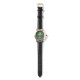 personalized watch, green dial, gold watch, white leather strap, elegant wristwatch, monogram gift, luxury accessory, custom initials, timeless fashion, stylish design