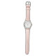 Un reloj de pulsera rosa para los niños, con brazalete de cuero.