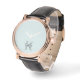 Reloj De Pulsera Guión moderno de monograma azul Aqua