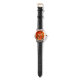 Perfecto reloj de correa cuadrada de cuero negro para mujeres con imágenes de Halloween en naranja y negro. Hay Drácula en su ataúd, una bruja malvada agitando su brebaje, cráneos, gatos negros, murciélagos, fantasmas y más. Vea el botón cuadrado correspondiente, el encanto cuadrado y la cadena de teclas acrílicas rectangulares de doble cara. Vea toda la colección Halloween Watch bajo la categoría ACCESORIOS en la sección VACACIONES.