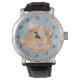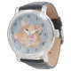 Naranja hámster cara asomando de jeans azules reloj de pulsera de bolsillo