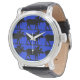 Repetir el patrón de alce negro sobre un fondo azul real, mostrado aquí en la cara de un reloj.