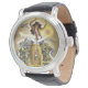 Un hermoso reloj vintage con un afiche de viaje de United Air Lines de una mujer hawaiana bailando hula.