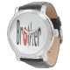 eWatch con correa de cuero Black Vintage redondo cara de gran impresión negro y rojo "Brother" Happy Sibling Day, para él cumpleaños,