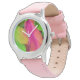 Reloj De Pulsera Hermoso patrón rosa y verde de leafía