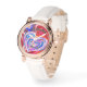 Un elegante reloj de oro rosa con un hermoso diseño abstracto rosado, rojo y azul liquidado. Este reloj de bonito incluye una elegante pulsera de cuero blanco. La cara del reloj tiene un mensaje de texto. El texto y las fotos son personalizables, y se pueden personalizar fácilmente para adaptarlas a sus necesidades. Este reloj único y hermoso es el mejor regalo para tu esposa, novia y mamá. ¡Un gran regalo para el cumpleaños, el boda, el aniversario, las vacaciones, el día de San Valentín, el día de la madre y para ti mismo! Una joyería verdaderamente única, que hará que cualquier mujer se sienta amada y especial!