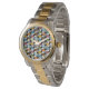Este reloj masculino tiene un diseño moderno de mediados de siglo de repetir hexágonos en colores retro con estallidos.