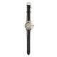 Este reloj de mujer tiene un diseño moderno de mediados de siglo de tres hojas en tonos desvanecidos de colores retro.