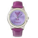 Serie motivacional: Amamos esto como lo hacemos nosotros - es un gran reloj de pulsera que te da un impulso de confianza cada vez. Puedes personalizar el texto "Hello Gorgeous!", si te gusta o canjeas por tus iniciales. El diseño es un estilizado fénix morado de aspecto grabado en relieve, con unas alas estilizadas sobre un fondo de juego creado para que parezca un cromo de lila pulido. Código de imagen: phnx