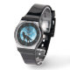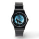 Holling Wolf Winter humo azul y nevado Abstract Wrist Watch. Accesorios para hombres de Guay con humo azul y blanco de nieve geométrico abstracto en invierno y silueta de lobo negro. Monograma Personalice con su personalizado inicial y su nombre.