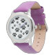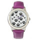 Este reloj presenta huellas de pata en negro sobre fondo blanco. Varios estilos de reloj y colores para elegir. Simplemente utilice los botones situados a la derecha del diseño para ver la opción diferente.