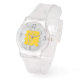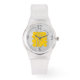 Personalizable amarillo ideograma del mono sobre el ilustracion cortado en papel como fondo. Puede cambiar fácilmente el color del ideograma haciendo clic en el botón personalizar. Diseño en Silicone Strap Clear watch con números de estilo joven. Perfecto para el Año Nuevo chino del mono o cumpleaños (personas nacidas en el año mono).