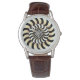 Abraza la elegancia atemporal con nuestro reloj de cuero marrón Sepia Ilusión. Este clásico reloj cuenta con una sofisticada correa de cuero marrón y un cautivador diseño de esfera. La esfera muestra una ilusión redonda en negro y blanco con sutiles tonos sepia, creando un efecto visual fascinante e inspirado en el vintage. Perfecto para ocasiones tanto casuales como formales, este reloj combina el estilo clásico con un toque de elegancia artística. La correa de cuero marrón añade calidez y versatilidad, lo que lo convierte en un accesorio ideal para cualquier guardarropa. Ya sea que vayas a una reunión de negocios o a una salida casual, este reloj seguro hará una declaración. Eleva tu colección de accesorios con el reloj de cuero marrón Sepia Ilusión, donde el diseño clásico se encuentra con la innovación artística. Deja que este reloj único añada un toque de encanto vintage y sofisticación moderna a tu estilo