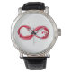 Infinity symbol of continuous stream of red wine pouring into glass wine glass on white background.