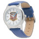 Este reloj personalizado para niños presenta una encantadora insignia de bombero. En el centro de la insignia hay un camión de bomberos de dibujos animados infantiles y juguetones de color rojo brillante. La pancarta superior dice "Líder de Escuadrón" mientras que la parte inferior es para el nombre de tu pequeño.