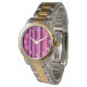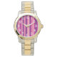 Este reloj tiene un diseño de rayas verticales de seis tonos violeta.