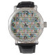 Este reloj masculino tiene un diseño Bauhaus de ovales de cuatro capas de espesor sobre un campo blanco. ¿Quieres el mismo diseño con colores diferentes? Mándame un mensaje.