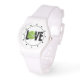 Este exclusivo diseño de reloj de tenis incluye la palabra LOVE con O como una pelota de tenis verde.