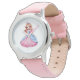 Los niños ven el reloj clásico de correa de cuero en rosa con una linda estampita de princesa. Elija este reloj de varios estilos. Personalizar este reloj o compra como está. Imagen con licencia