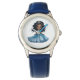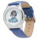 Los niños ven el reloj clásico de correa de cuero en azul con una linda estampa de princesa. Elija este reloj de varios estilos. Personalizar este reloj o compra como está. Imagen con licencia