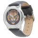 Niños con reloj clásico de correa de cuero mostrado en negro con tigre impreso. Elija este reloj de varios estilos. Personalizar este reloj o compra como está. Imagen con licencia