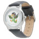 Niños con el reloj clásico de correa de cuero mostrado en negro con una linda huella de loro pirata. Elija este reloj de varios estilos. Personalizar este reloj o compra como está. Imagen de stock all-free-download.com