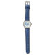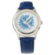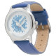 Los niños miran con una correa de cuero azul con una huella religiosa de paloma. Personalizar este reloj o compra como está. Imagen con licencia