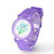 Durable and designed to handle active lifestyles, this watch combines practicality with adorable design. The purple strap complements the green floral artwork beautifully, creating a balanced and eye-catching accessory.