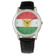 Bandera de Kurdistán. La bandera de Kurdistán (kurdo: Alay Kurdistán también llamó a Alaya Rengîn "La bandera colorida") apareció por primera vez durante la independencia kurda de la República de Mahabad. Actualmente se utiliza como bandera oficial de la región autónoma del Kurdistán en el Iraq, que está bajo el control del Gobierno Regional del Kurdistán. La bandera está prohibida en Turquía, Irán y Siria. La principal característica kurda de la bandera es el llamativo emblema del sol dorado en el centro, que es un antiguo símbolo religioso y cultural entre los kurdos y sinónimo de fuego al representar la sabiduría en el zoroastrismo. El disco solar del emblema tiene 21 rayos, de tamaño y forma iguales. El número 21 tiene importancia en las antiguas tradiciones religiosas de los kurdos. El simbolismo de los colores es: el rojo simboliza la sangre de los mártires de Kurdistán y la continua lucha por la libertad y dignidad para el Kurdistán y su pueblo; el verde expresa la belleza y los paisajes de Kurdistán; el blanco expresa paz e igualdad; y el amarillo representa la fuente de vida y luz del pueblo.