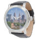 El paisaje del río Cleveland clásico aparece en la cara decorativa de reloj. Un reloj único añade un toque elegante al reloj de la ciudad.