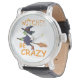 Las brujas sean locas Accesorios para el hogar, deseos locos, relojes de cuero de halloween, hallowen 2021, relojes fiestas, deseos locos, truco o regalo, fiesta de halloween Regalo Colección clásica de reloj de cuero negro de la época de halloween.
