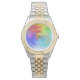 Este elegante reloj de color plata y dorado presenta las obras de arte digital Ripples de Sam Vacik en colores vivos en un diseño gráfico.