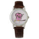 Elegante reloj personalizado presenta un ilustracion vectorial dulce de un búho encaramado en una rama de árbol sobre un fondo de patrón de puntos de polka. Babystar Design en mygrafico.com