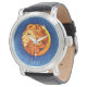 El ilustracion colorido presenta fondo azul con un león dorado - el símbolo del signo astrológico zodiaco Leo (23 jul.-21 ago.).