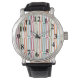 Este reloj masculino tiene un diseño moderno de mediados de siglo de repetición de rectángulos en verde azulado, naranja, remolacha y naranja en un campo de blanco. Si te gusta el diseño pero prefieres colores diferentes, envíame un mensaje.