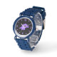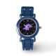 Dulzura de reloj de pulsera negro lila con una Stegosaurus mono pequeña. Un regalo fantástico para niños que de los tiempos primitivos y animales aman dinosaurios!
