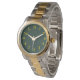 Te mostrarán tu buen gusto usando este reloj de color verde oscuro con números dorados.