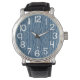 Este reloj masculino tiene un diseño Art Déco que se parece a un tablero de circuitos. Las líneas corren verticalmente en blanco sobre un campo azul. ¿Quieres un color diferente? Mándame un mensaje.