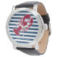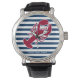 Reloj De Pulsera Lobster Rojo Náutico Monograma Banda Blanca Azul
