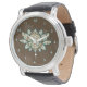 Capas de tejido celta y mehndi indio de la decoración de Lotus Weave han sido enmascaradas bajo una forma de flor de loto en tonos verde azulados y marrones. Este reloj está disponible en una variedad de tamaños, colores y estilos, incluyendo tamaños para niños y adultos.