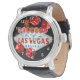 Guay watch con el famoso cartel de Bienvenida a las Fabulosas Vegas con dados rojos. Un gráfico de arte original de urbanphotos.net Este reloj incluye números en la cara.