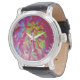 Reloj De Pulsera Magenta psicodélica y flor de dalia amarilla