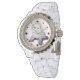 Este reloj está adornado con un ilustracion gráfico que representa un adorable cachorro maltés o maltés mezclado con caniche en una pose sentada.