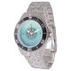 Blue Ombre Watch. Un rosa de brújula náutica para mantener tus travesías oceánicas. Disfrute del elegante efecto óptico de ilusión del fondo sombrío. Mantenga la cita "En las olas de cambio encontramos nuestra verdadera dirección" o agregue un nombre, sentimiento o monograma al personalizar. Sé Personalizado, sé único, ¡sé tú con un estilo fabuloso!